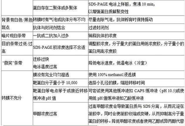 電轉移緩沖液中SDS與甲醇的平衡、蛋白的大小、膠的濃度都會影響轉膜效果,如下調整可以增加轉膜效率: