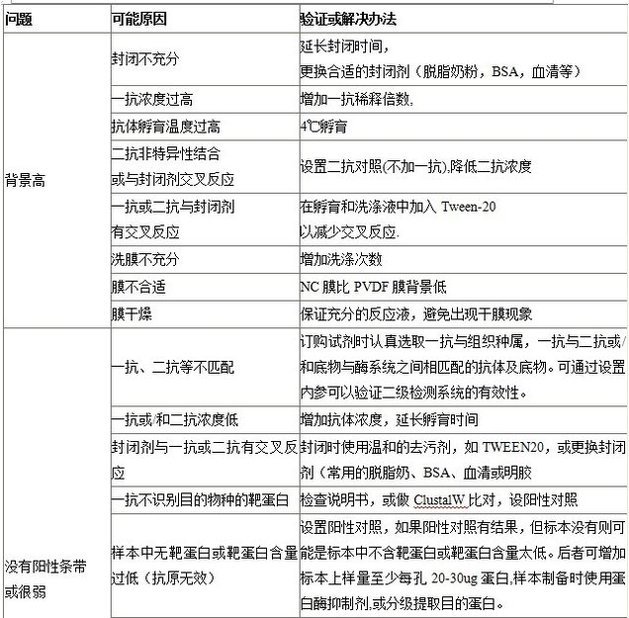 使用0.5%奶粉或無奶粉代替5%奶粉的抗體稀釋液,或更換封閉劑,減少封閉時間。