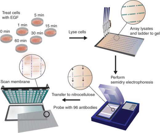 這一方法導致了細胞生物學領域大量成果的涌現,但是仍然受限于WB實驗需要大量細胞原料和昂貴的抗體,而且這一方法也不能同時進行多個蛋白的檢測。隨著細胞網絡中成百上千的蛋白被發現,科學家們越來越希望能分析這些蛋白的活動,和蛋白之間的相互作用。