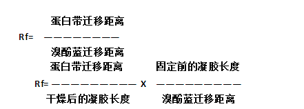Rf即用每個帶的遷移距離除以溴酚藍前沿的遷移距離得到的。   測量位置應在蛋白帶的中央。