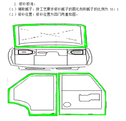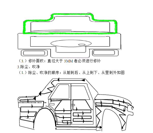 1. 電泳打磨:對電泳烘烤后的車身顆粒、電泳流痕、焊裝殘渣等不良點進行打磨 2. 修補膠泡:對電泳烘烤后的密封膠泡進行修補 3.除塵、吹凈:對打磨后的車身進行全車吹凈、除塵